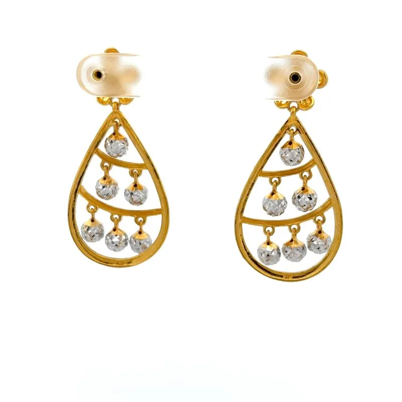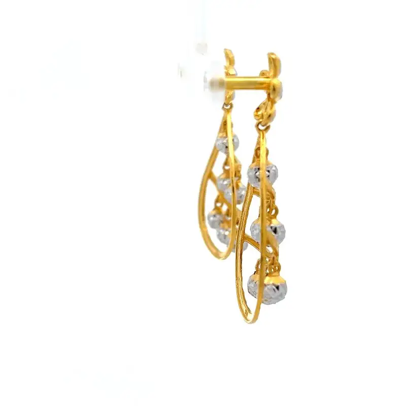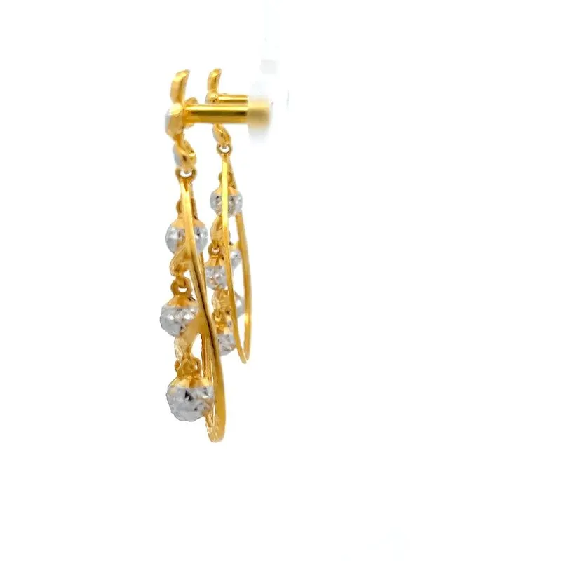 Allow nature to adorn you with our Floral Raindrop Gold Drop Earrings, featuring an intricate two-tone design and floral motifs in 22k gold.