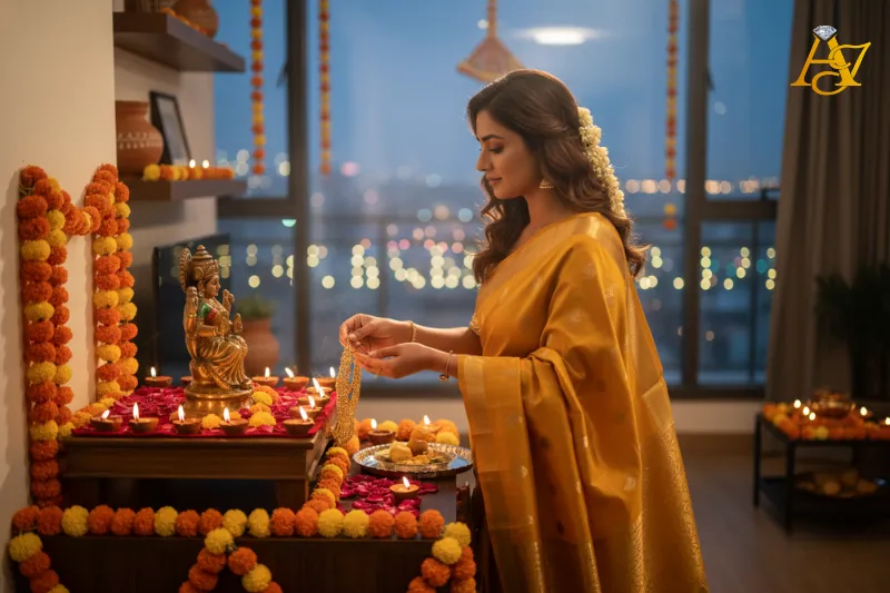 Many families believe that keeping gold in the house invites Lakshmi’s blessings. It gives a sense of safety and peace. That is why South Indian families treat gold with respect and care.