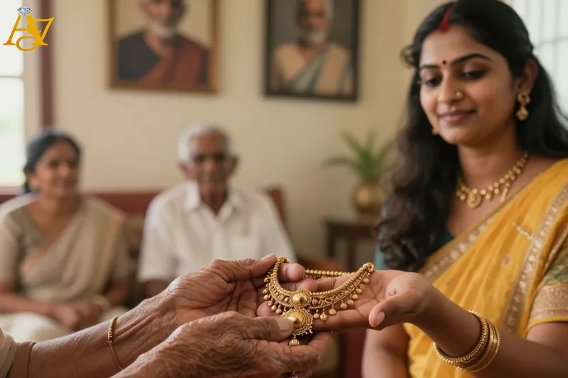 Gold in South Indian families is a link between generations. Families pass gold from one generation to the next, keeping memories, emotions, and traditions alive.Â